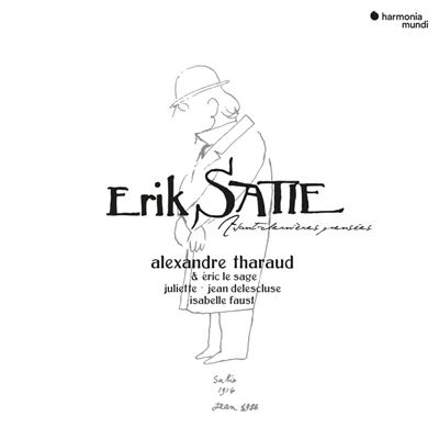 Alexandre Tharaud, familier de l’univers” satiste”, a voulu nous restituer à la fois l’ampleur, la complexité et finalement l’unité d’une œuvre polymorphe dont on ne connaît en général que quelques pièces emblématiques qui ne suffisent pas à rendre justice d’un travail au long cours témoignant d’une grande richesse compositionnelle. À cette fin, il a souhaité pour le label Harmonia Mundí s’entourer des talents d’Éric Le Sage pour les pièces à quatre mains, d’Isabelle Faust au violon, de la chanteuse Juliette, du ténor Jean Delescluse et, pour une seule pièce, du trompettiste David Guerrier.