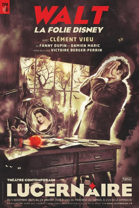 Le comédien Clément Vieu donne un coup de jeune à « l’oncle Walt »… dans un décor (un rideau de fils, un bureau transformable, un porte-manteau avec miroir) où rien n’est laissé au hasard, déploie ses qualités de comédien et de mime. Une certaine ressemblance physique avec le personnage, jusqu’au costume et à la coiffure gominée, accentue la crédibilité de la pièce.